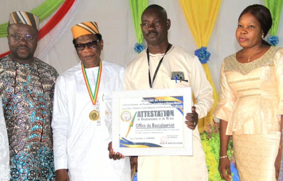 Le Directeur de l’Office du Baccalauréat (OB), Dr Alphonse da Silva et des cadres de l’Office qu’il dirige ont été primés lors d’une cérémonie organisée à Porto-Novo, samedi 13 septembre 2025, par la Fédération des mouvements et associations de groupes œuvrant pour la paix, la médiation, l’unité nationale et le vivre ensemble (FENAMAG).