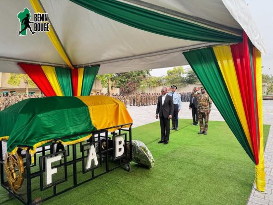 Un hommage a été rendu, ce samedi 17 janvier 2026, au quartier-maître de 1ère classe, Dotou Jean-Baptiste, décédé lors de la tentative du coup d’Etat déjouée du 7 décembre 2025. La cérémonie a eu lieu à la place d’armes de la Garde républicaine, au sein de la Présidence de la République en présence du Chef de l’Etat, Patrice Talon.