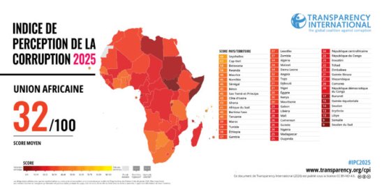 Avec un score de 45 points sur 100, le Bénin occupe le 70ᵉ rang sur 182 pays et territoires évalués à travers le monde en matière de perception de la corruption dans le service public, selon le rapport 2025 sur l’Indice de perception de la corruption (IPC), publié mardi 10 février 2026 par Transparency International.