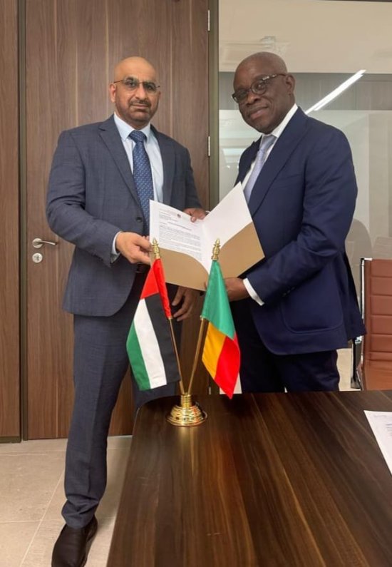 L’entretien entre Son Excellence Mohammed Saeed Al Kaabi et le ministre José Didier Tonatoa a porté sur les moyens de renforcer la coopération entre les Emirats arabes unis et le Bénin dans les domaines du développement durable, de l’énergie, des transports et des mines, ainsi que sur l’échange d’expertises techniques et la création de partenariats dans des secteurs d’intérêt commun.