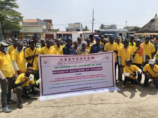 L’édition 2025 du projet « Top citoyen top sécurité » de la Centrale des syndicats des conducteurs de taxi-moto (CESYCOTAM), a été lancée ce vendredi 21 novembre 2025, à la Maison du peuple d’Agla dans le 13e arrondissement de Cotonou. Cette édition placée sous le thème « Sécurité routière et civisme », est soutenue par la Société de gestion des déchets et de la salubrité (SGDS).