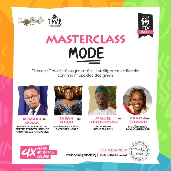 Dans le cadre du volet formation du Festival international des arts du Bénin (FInAB), une Masterclass gratuite sur la mode est prévue pour ce jeudi 19 février 2026 à l’hôtel Casa Cielo. C’est une session de formation intensive et interactive qui sera animée par des créateurs et professionnels de la mode.