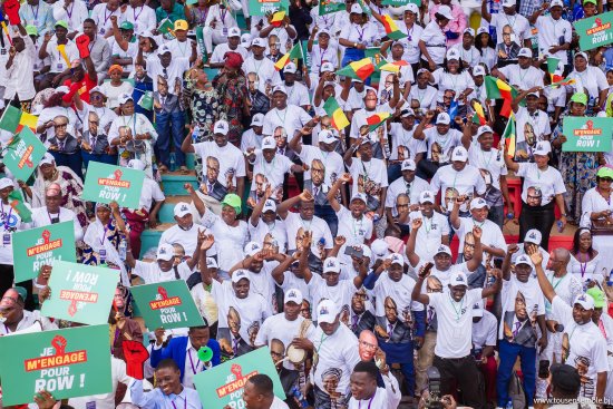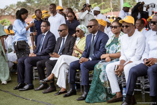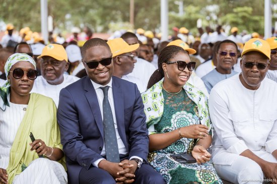 Le stade municipal de Parakou a accueilli ce samedi 04 octobre 2025, la cérémonie d’investiture de Romuald Wadagni-Mariam Talata, duo candidat de la mouvance à l’élection présidentielle 2026. Tous les présidents des quatre partis politiques de la majorité présidentielle (UPR, BR, Moele Bénin et Renaissance Nationale ) ainsi que le président de l’Assemblée nationale sont présents à Parakou. Les militants ont fait massivement le déplacement. Le stade municipal de Parakou est plein comme un oeuf. En images, les temps forts de cette cérémonie.