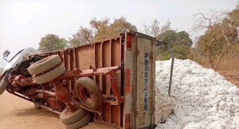Un camion transportant plusieurs tonnes de coton s’est renversé, vendredi 16 janvier 2026, sur l’axe Kalalé-Nikki, dans le nord du Bénin.