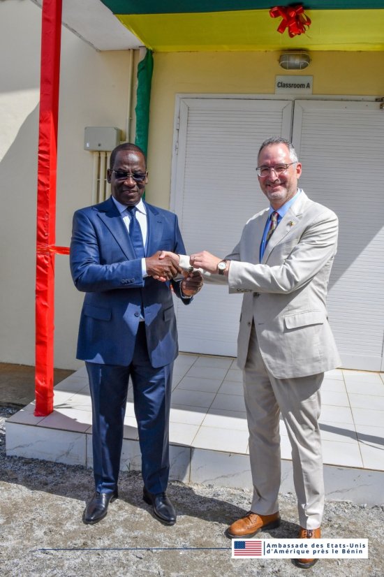 L’ambassadeur des Etats-Unis au Bénin, SEM. Brian Shukan, et le ministre de l’intérieur et de la sécurité publique, Alassane Séïdou, ont procédé à l’inauguration ces derniers jours, d’un nouveau centre de formation pour la Police républicaine. L’édifice a été réalisé grâce à l’appui financier des Etats-Unis et du gouvernement béninois.
