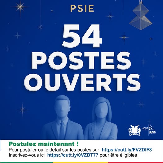 Le Programme Spécial d’Insertion dans l’Emploi (PSIE), a annoncé le 23 décembre 2025, le recrutement de 54 candidats. Les postes concernent plusieurs secteurs.