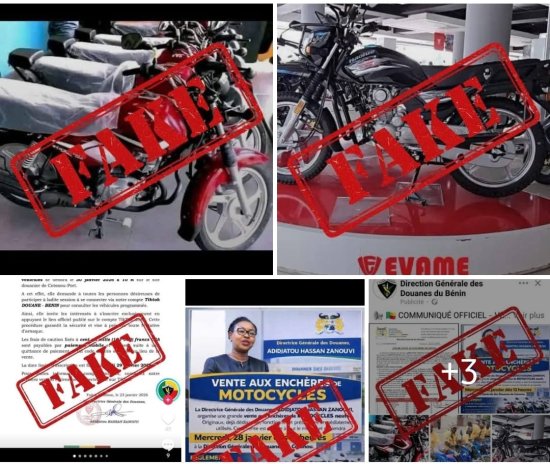 Il circule sur les réseaux sociaux un faux document administratif imitant un « avis aux usagers » de la Douane, annonçant une vente aux enchères de plus de 200 véhicules. Les auteurs invitent les intéressés à s’inscrire et à verser de l’argent, notamment sous forme de cautions ou de frais d’inscription.