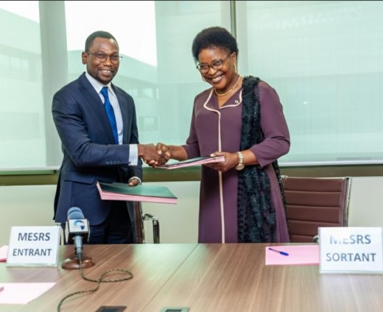 La ministre sortante de l’Enseignement Supérieur et de la Recherche Scientifique, Eléonore Yayi Ladékan a passé officiellement service, ce jeudi 19 février 2026, au professeur Benjamin Hounkpatin.