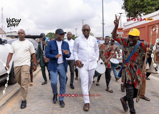 Le Ministre d’État Romuald Wadagni s’est rendu ce matin, 8 janvier, aux Vodun Days, où il a pris part aux animations des places emblématiques, au cœur de la ville et sur la plage : la Place Maro, l’Esplanade du Fort Français, la Place Ninsouxwé, la Forêt sacrée de Kpassè, le Temple Mami-Plage et le Couvent Sakpata.