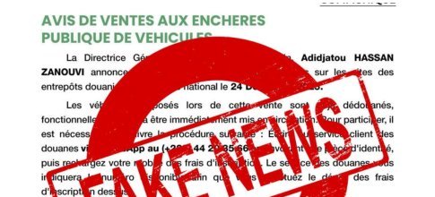 Une fausse annonce de vente aux enchères publique de véhicules attribuée à la Direction générale des Douanes circule depuis quelques heures sur les réseaux sociaux.