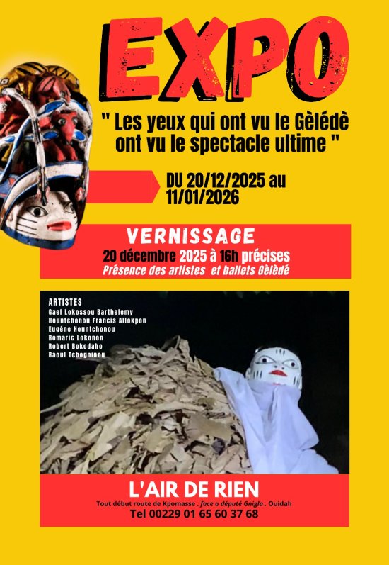 À partir du 20 décembre 2025, la Guest House ‘’L’Air de Rien’’, située à Ouïdah, ouvre ses portes à sa troisième grande exposition consacrée à l’univers fascinant du Gèlédè.