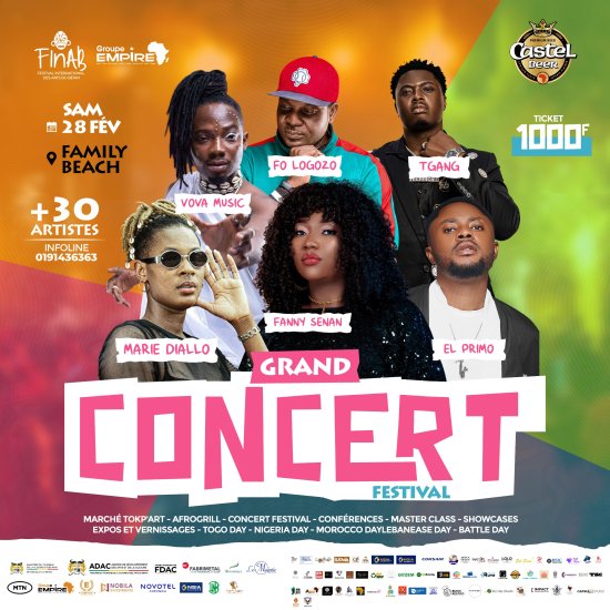Les artistes T Gang et Fo Logozo offrent un géant concert au public de Cotonou et environs, ce samedi 28 février 2026, sur le site officiel du Festival international des arts du Bénin (FInAB), à Family Beach de Cotonou, situé dans la rue de la direction générale de MTN-Bénin.